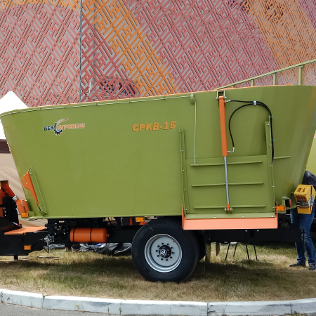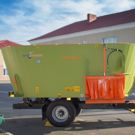 Линейка полуприцепных кормораздатчиков серии СРКВ объемом 13, 15 и 17 м³ — это надежная сельхозтехника, созданная для качественного измельчения, смешивания и равномерной раздачи рационов. Благодаря двум вертикальным шнекам ступенчатой формы, агрегаты обеспечивают идеальную структуру кормосмеси, сохраняя питательные свойства ингредиентов.