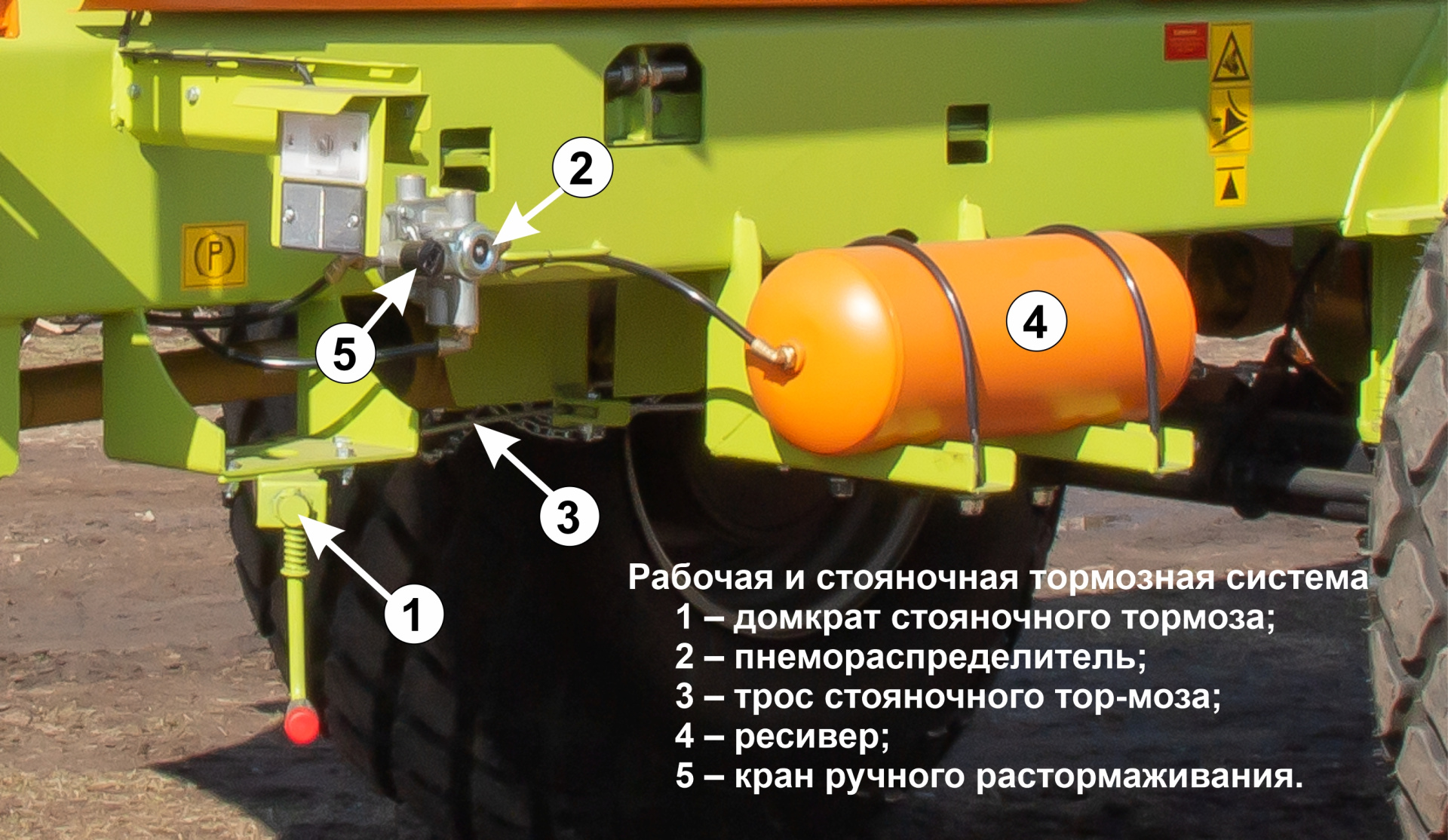 Тормозная система Пневматическая, однопроводная (ресивер 40л)